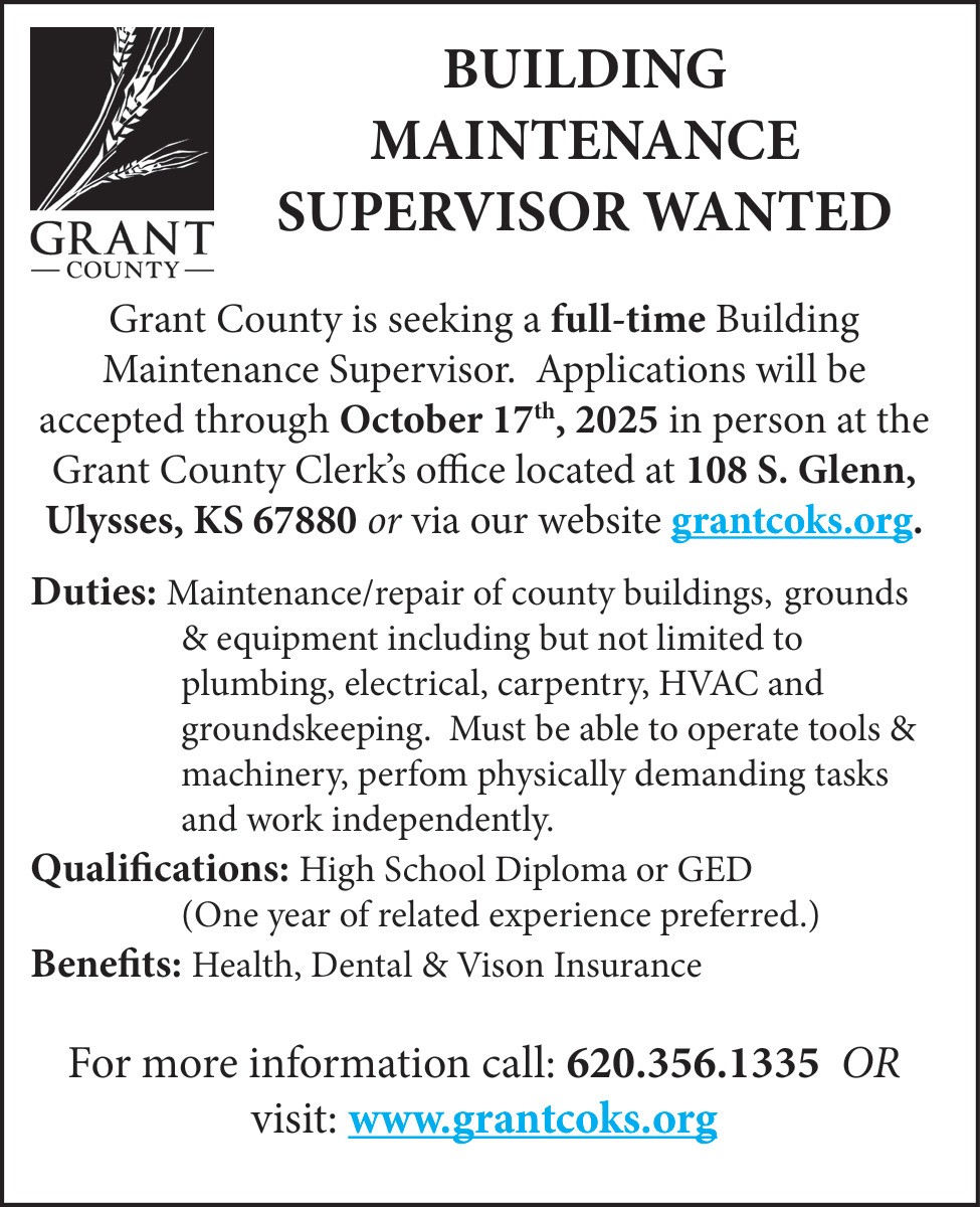 Oct 11, 2025. Grant County Jobs Ads from The Ulysses News