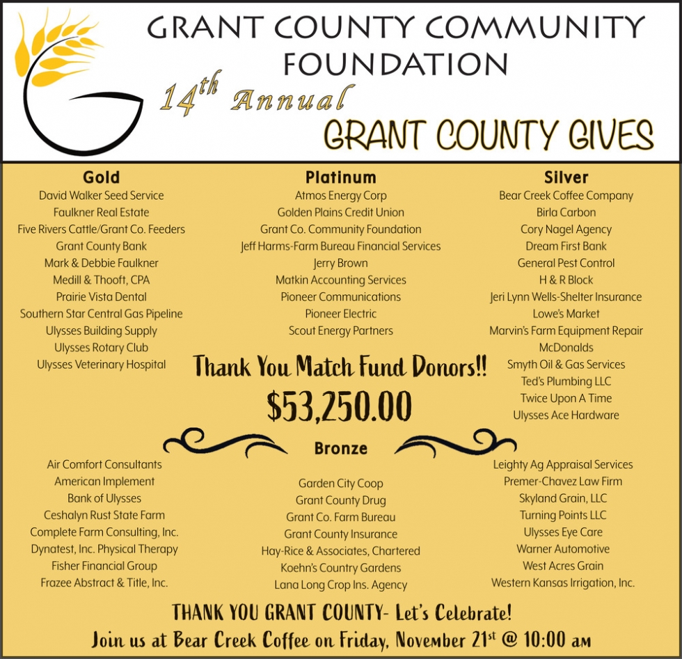 Dec 04, 2025. Grant County Community Foundation Fundraisers Ads from The Ulysses News