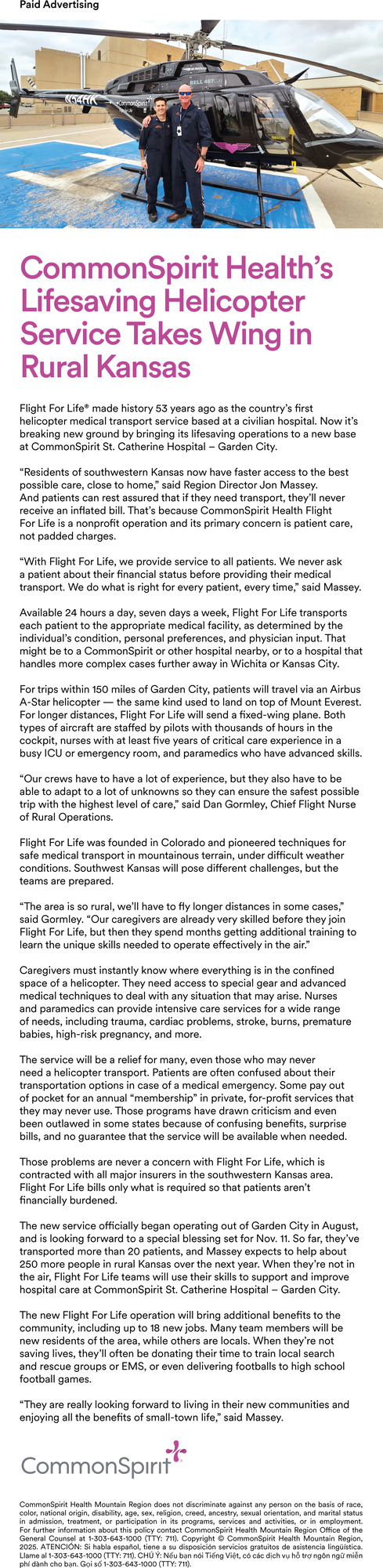 CommonSpirit Health's Lifesaving Helicopter Service Takes Wing in Rural Kansas