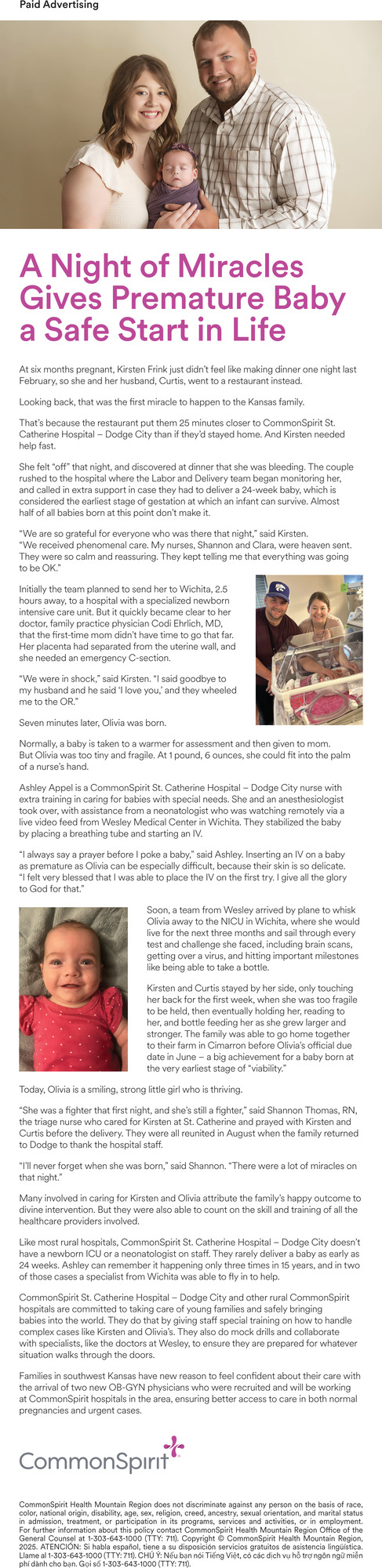 Ads for CommonSpirit in Ulysses, KS