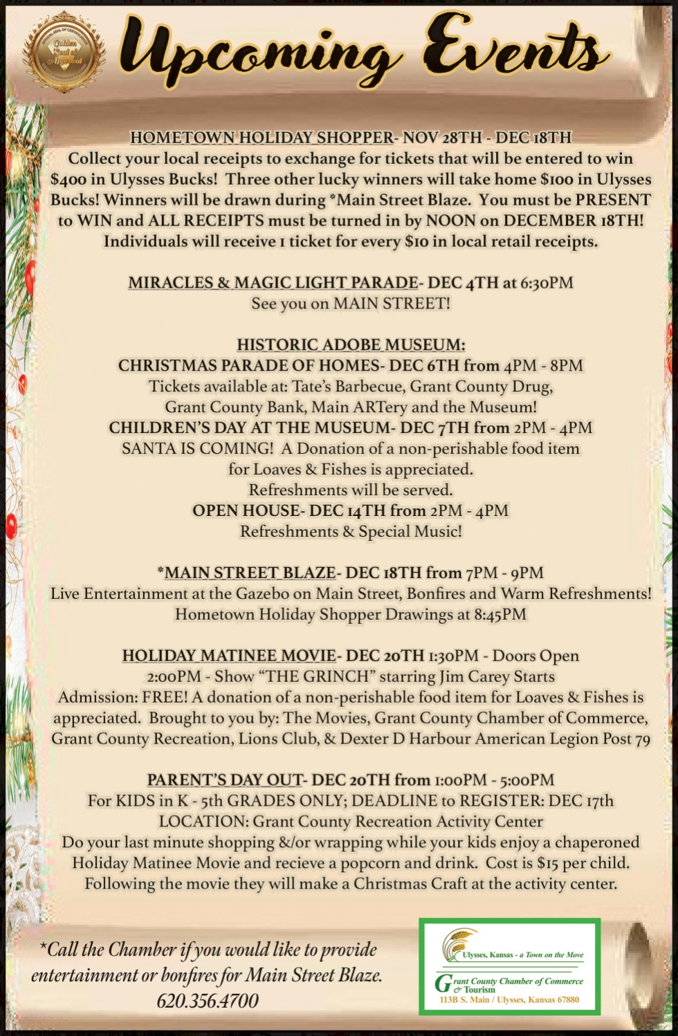 Dec 23, 2025. Grant County Chamber Of Commerce & Tourism Events Ads from The Ulysses News