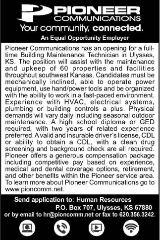 Jun 02, 2021. Pioneer Communications Jobs Ads from The Ulysses News